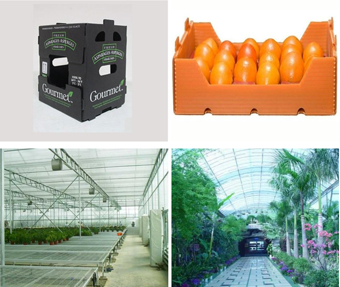 تُستخدم المنتجات PP Hollow Sheet بشكل أساسي في تغليف تصدير الخضروات والأطعمة والمبيدات الحشرية والمنتجات الصناعية الخفيفة والأواني الصلبة ومواد البناء ، كما أنها تستخدم في تجهيز الأجهزة المنزلية والإعلانات والديكور الداخلي والخارجي وزخرفة المعارض الكبيرة الحجم ، والمواد الخام لصناديق الدوران ، وقواعد المزهريات ، والأغطية العلوية للسيارات وما إلى ذلك