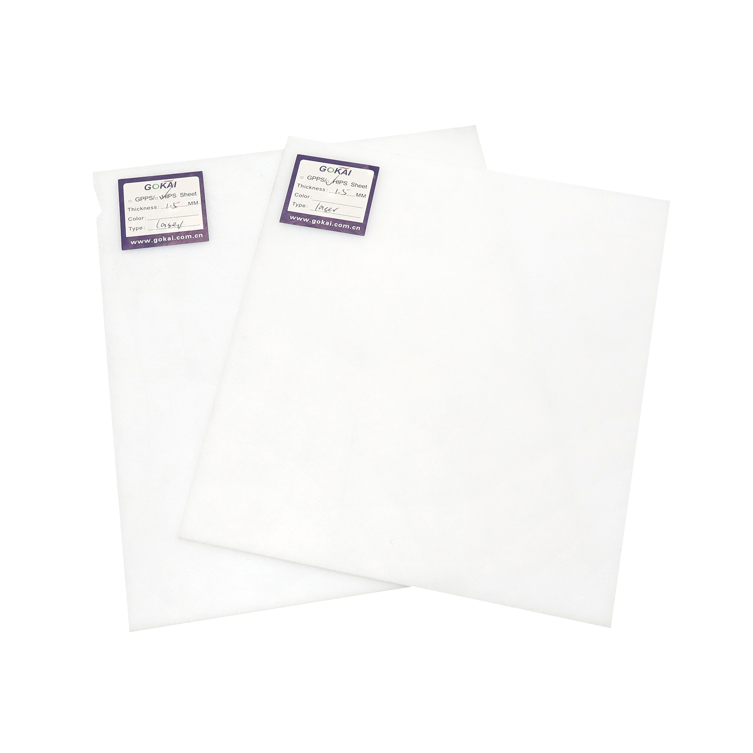 ورقة HIPS عديمة اللون والرائحة والمذاق ولامعة. خفيفة الوزن، منخفضة في امتصاص الماء، جيدة في التلوين ومستقرة في الخصائص الكيميائية؛ ممتاز في العزل الكهربائي والعزل عالي التردد. معينة في مقاومة التأثير ومقاومة الطقس. أقل في السعر من PMMA (الاكريليك)؛ قادرة على المعالجة الميكانيكية، الانحناء الساخن، طباعة الشاشة الحريرية، تقرحات، الخ.